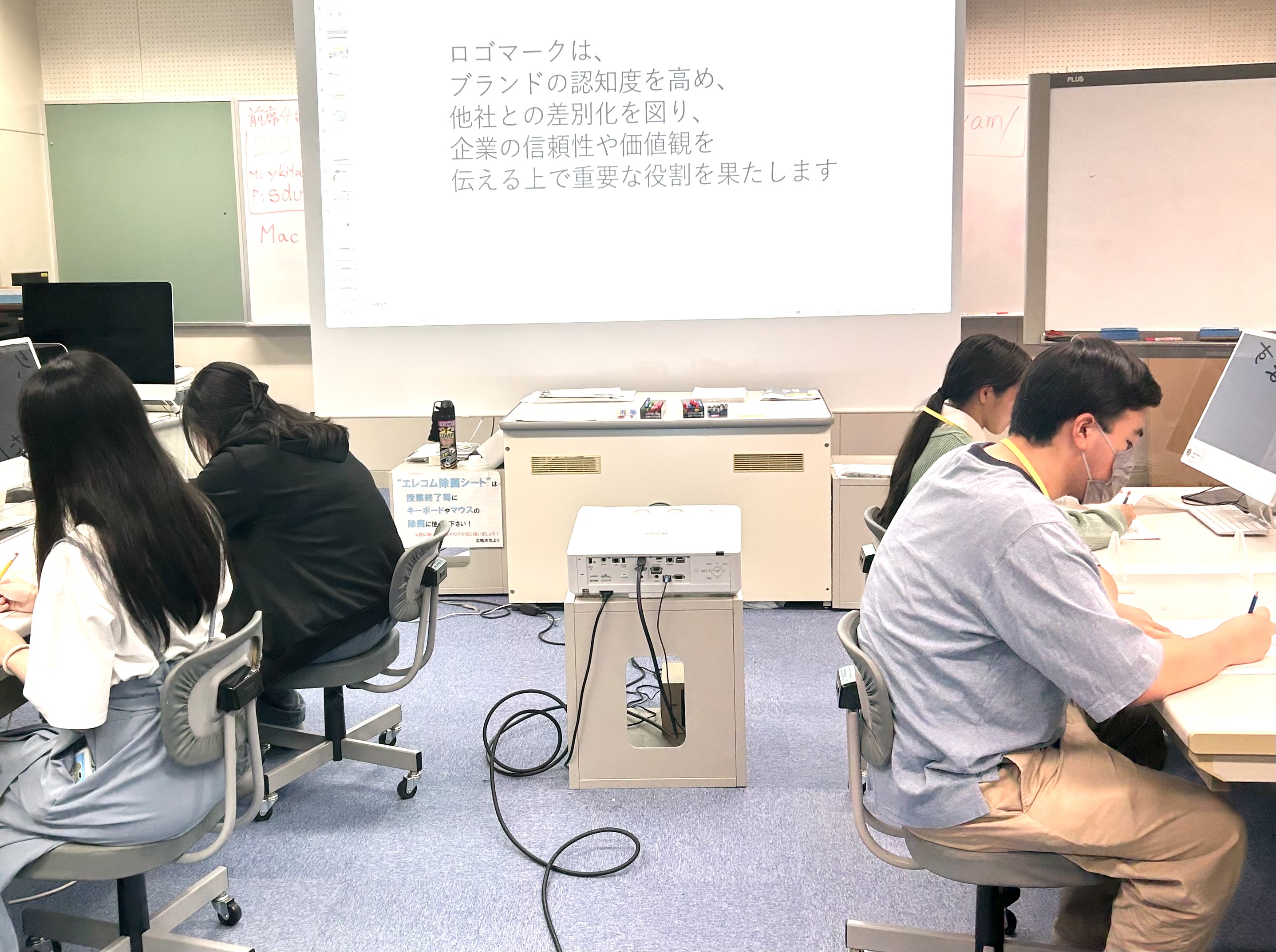 以下の写真の一部は、グラフィックデザイン「自分のマークをつくってみよう!」のようす。