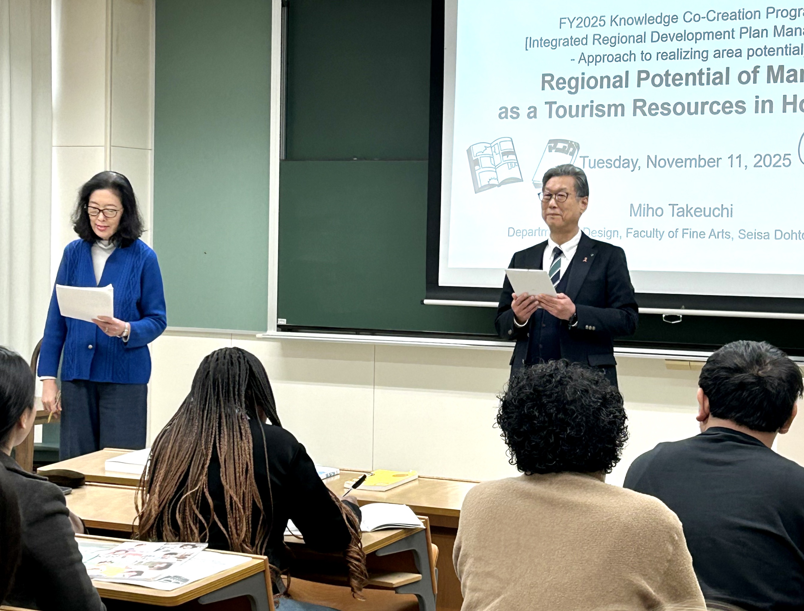 11月11日(火)、本学に立ち寄って、竹内先生のマンガに係る講義を受講されました。
