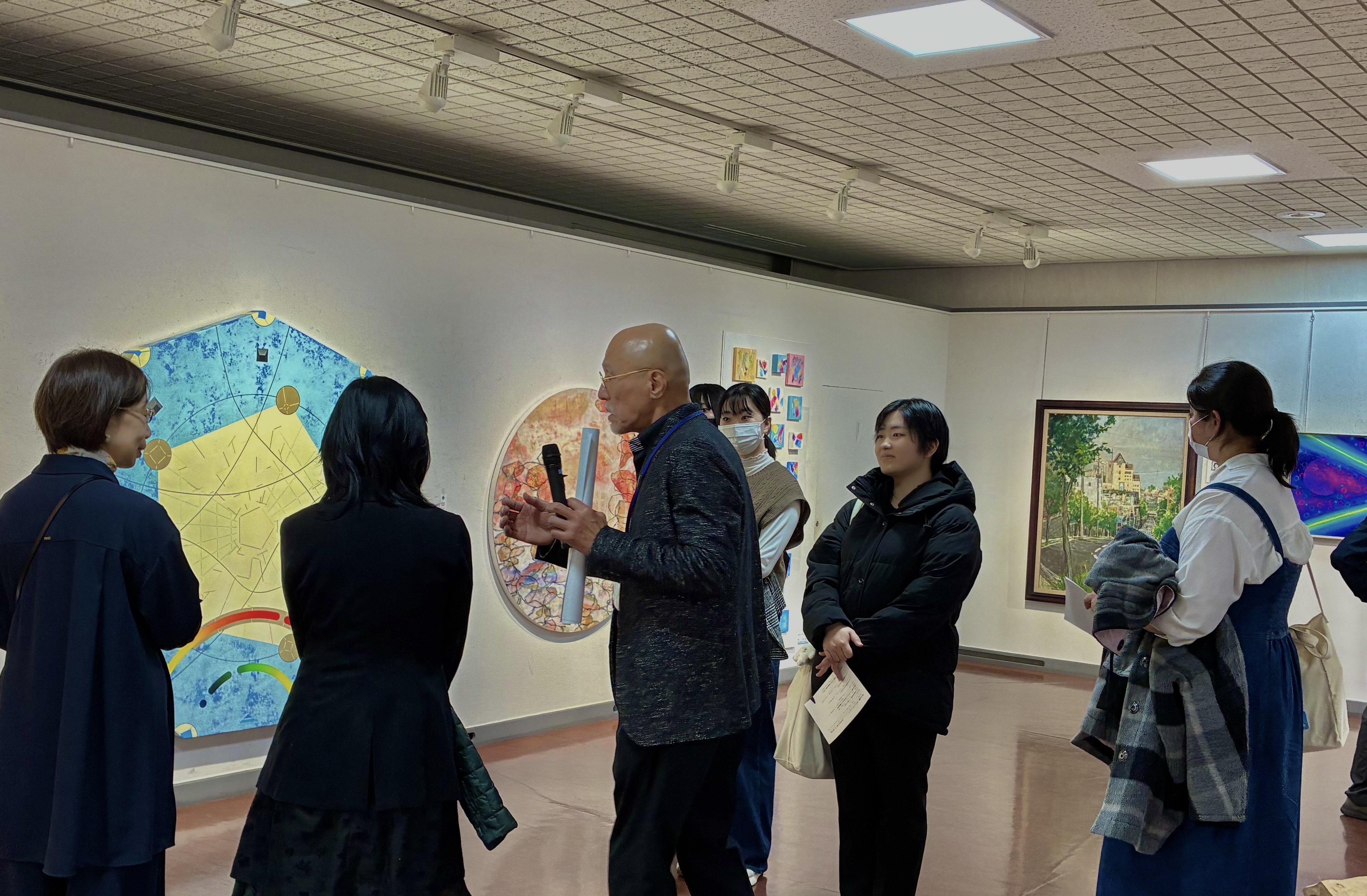 午後からは道展会員が合流し、ジャンル毎にツアー形式で展示作品の解説が行われ、