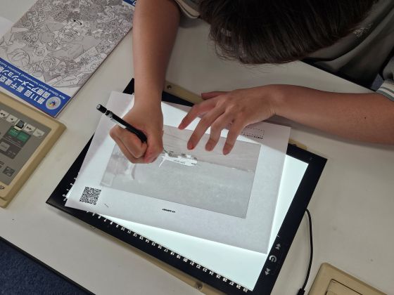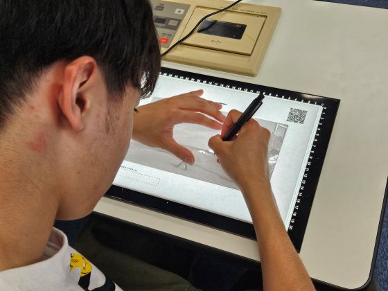実際の映像を1コマずつ静止画にし、それを下絵として“なぞる”ことで作画を行う「ロトスコープ」技法を使い、アニメーション原画の制作に挑戦しました。