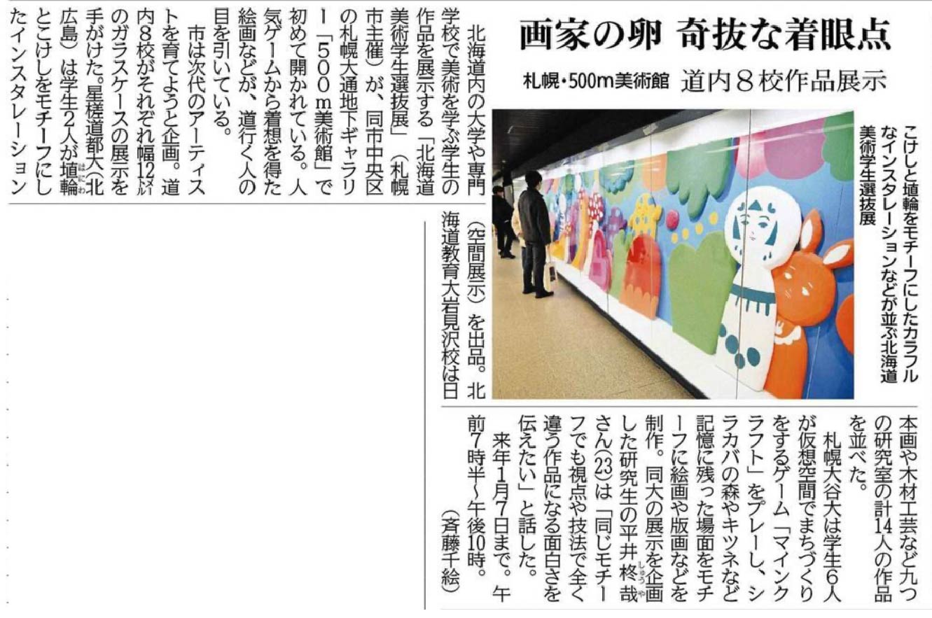 道新に掲載!札幌500M美術館に展示!【梅田ゼミ】②