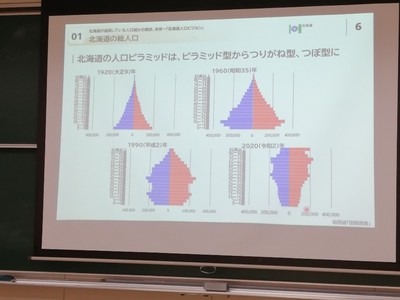 担当者による事前説明 北海道の人口は少子高齢化へ