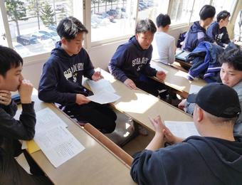 経営学科では毎年恒例の「権利の熱気球」を実施しました。このゲームは、「人に尊重される権利」や「毎日きれいな水を飲める権利」など、いろいろな“権利”を熱気球に乗せて、重量オーバーになったときにどれを手放すかをグループで話し合うというものです。