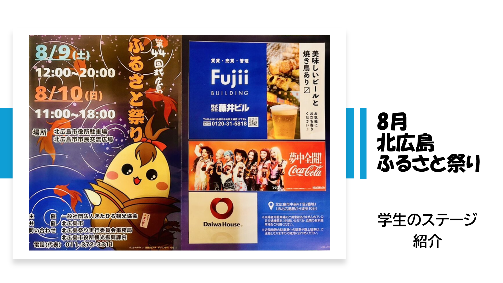 8月 北広島市ふるさと祭りでステージへ♪