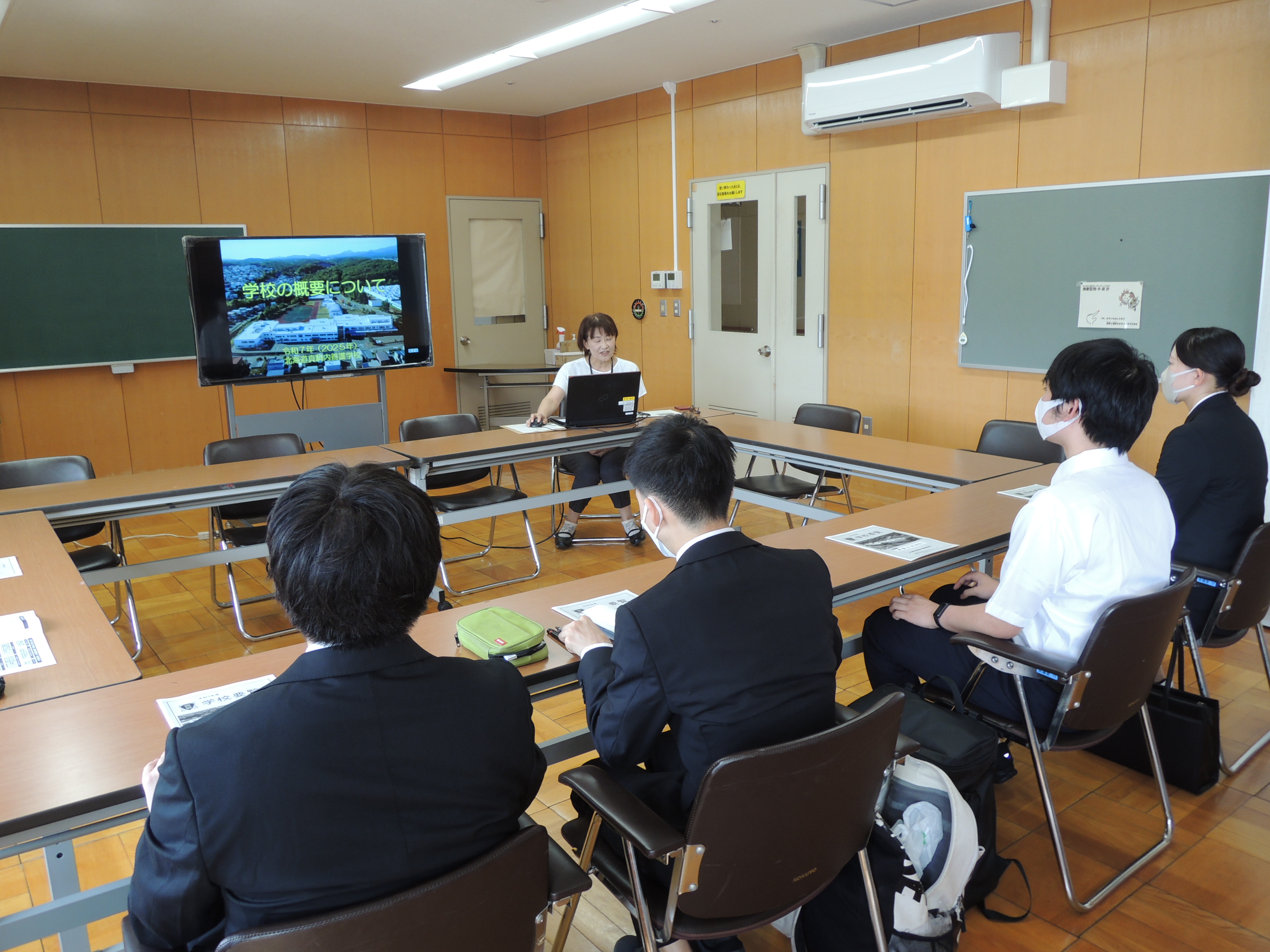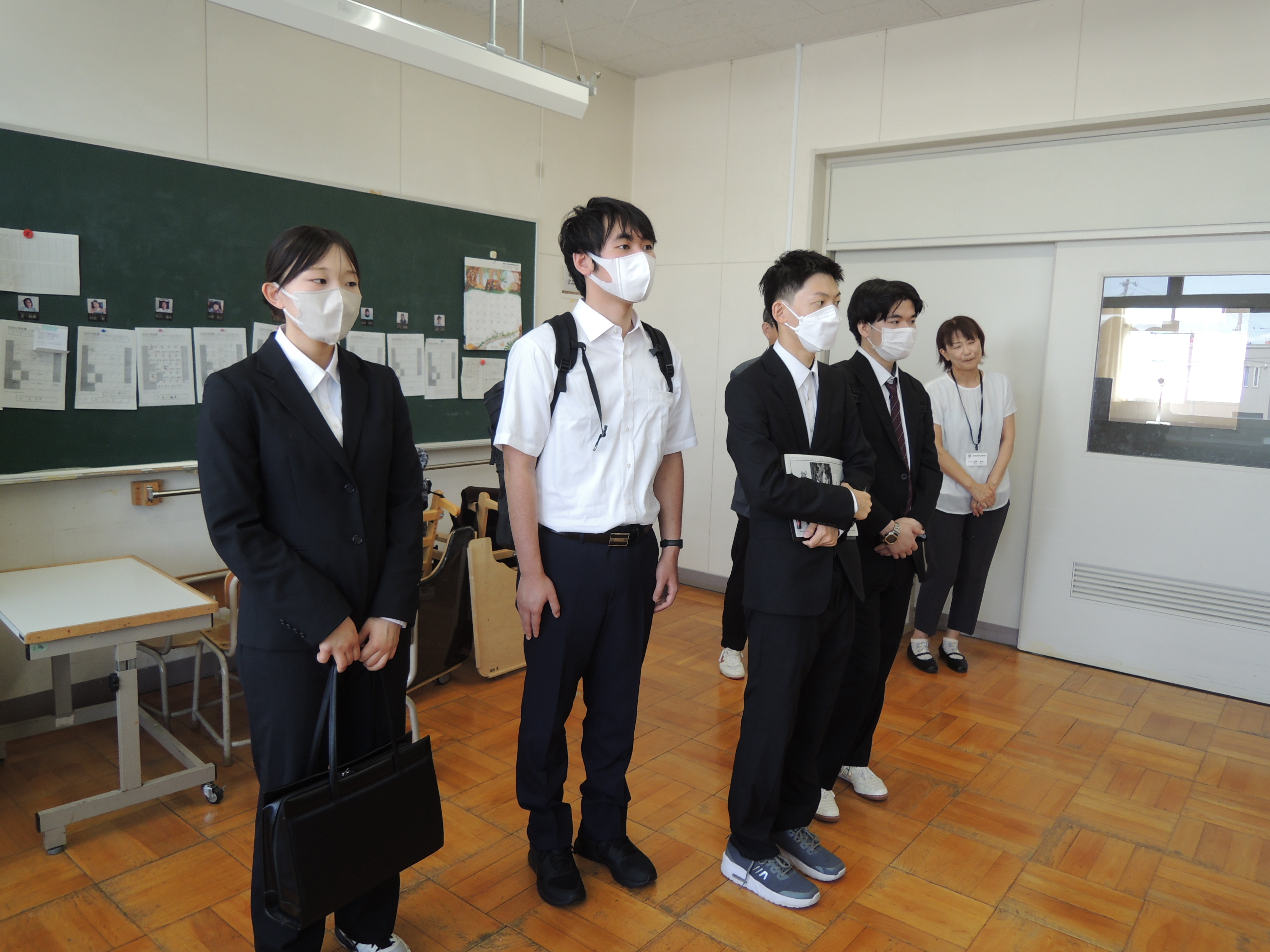 特別支援教育コーディネーターの上村先生から学校説明をいただき、学生は真剣にお話しに耳を傾けていました。