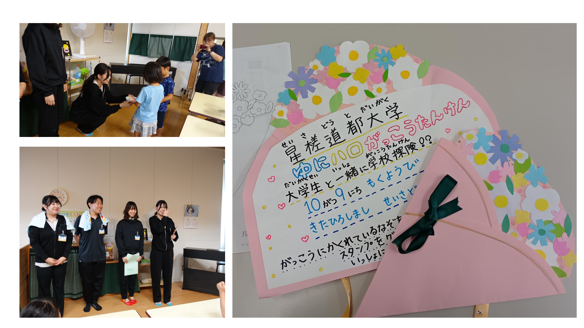子どもたちと手つなぎで、大学構内を巡るスタンプラリー