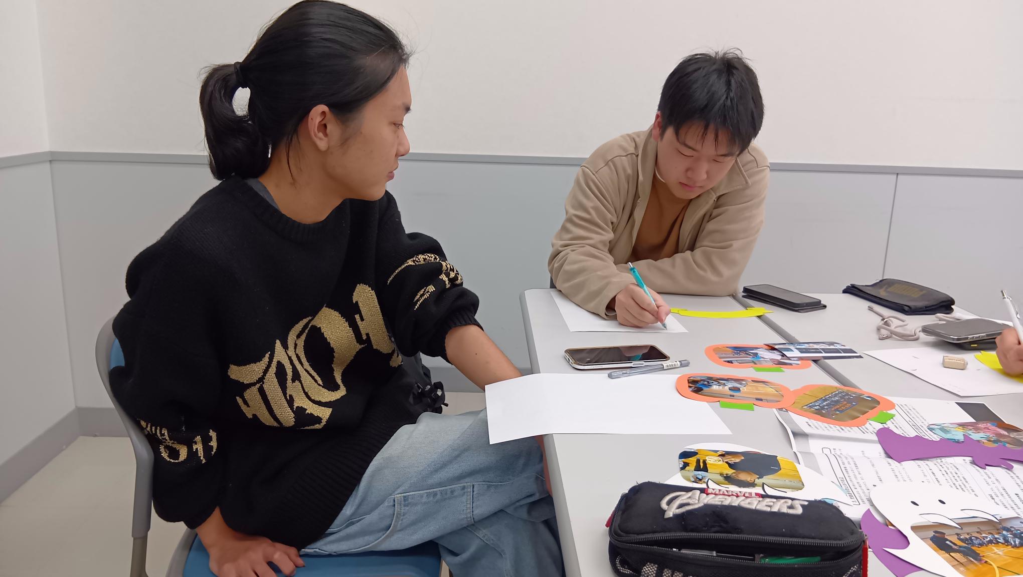 この授業には、3人の留学生も履修していますが一緒に話し合い↓↓↓