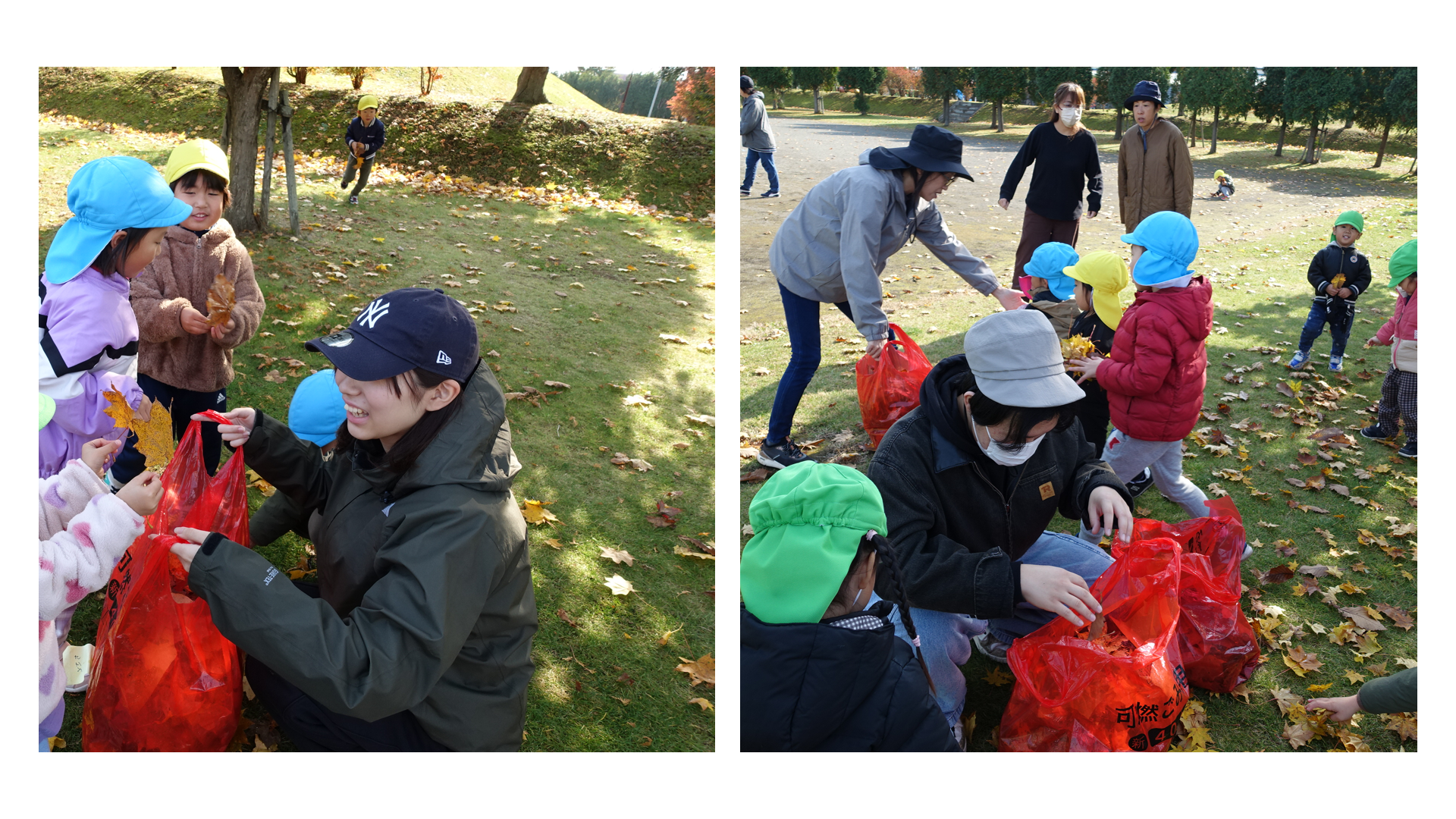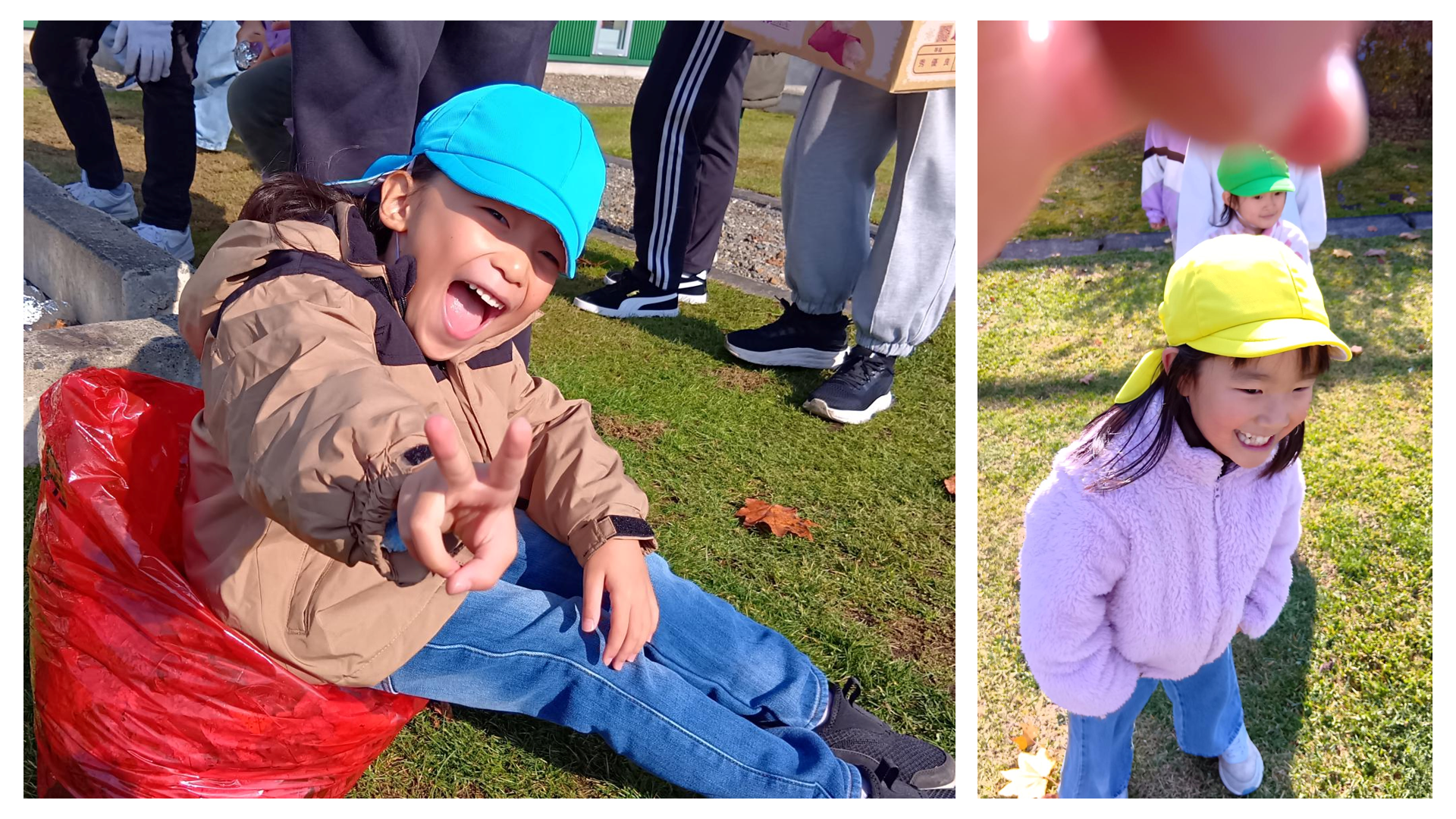 焼けるのを待つ間、追加の落ち葉を拾ったり、ブランコや鉄棒、築山(つきやま=人工的に作られた山デス)を駆け回って遊びました。焼けたかな?!