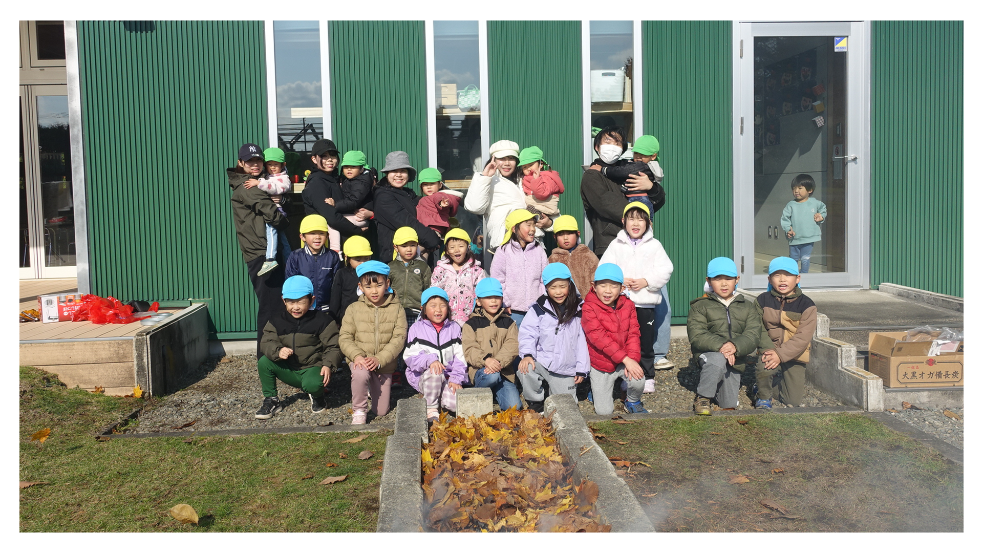 その後、アルミホイルで巻いた芋を抱えて園庭に出ました。