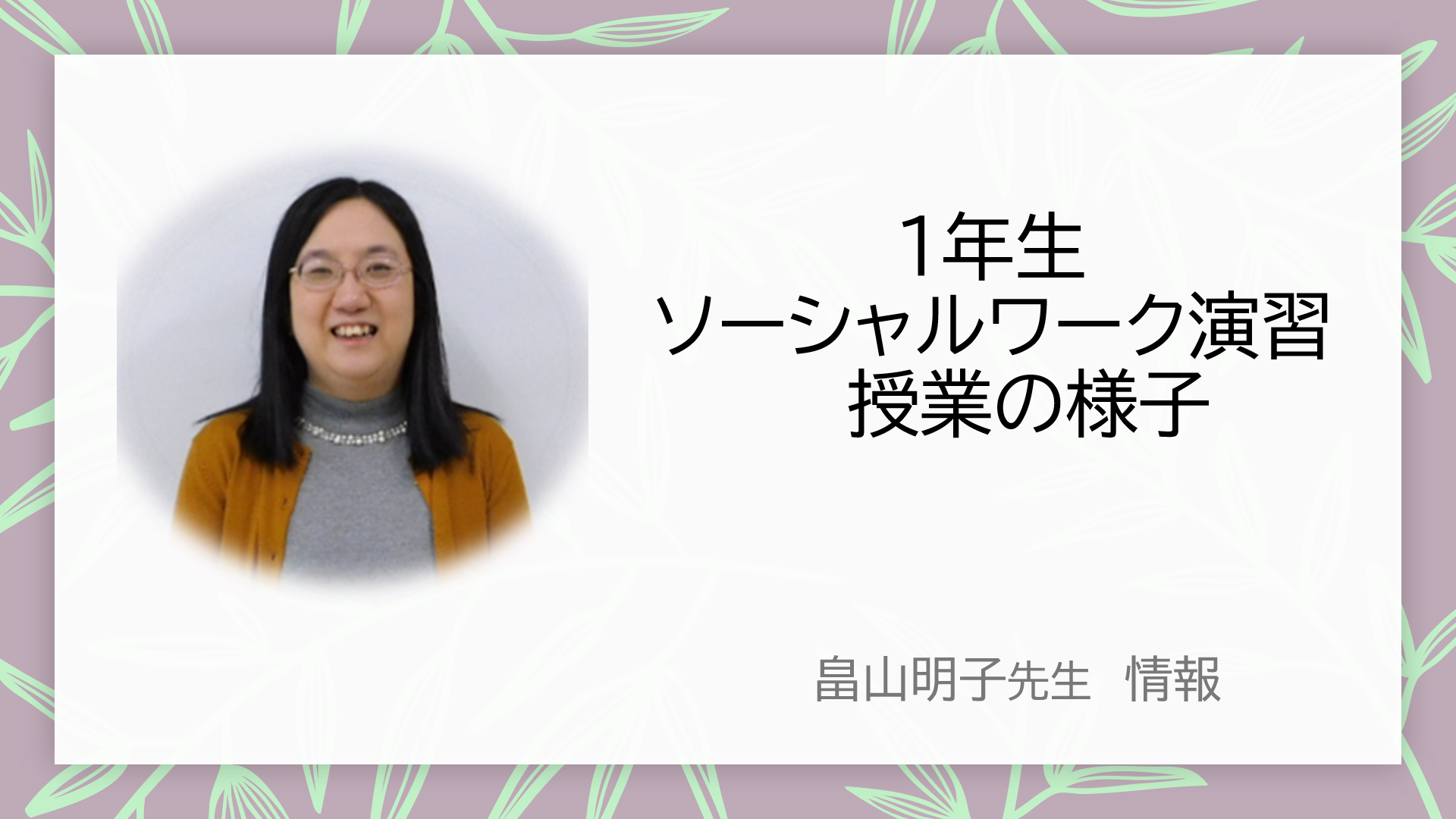 ソーシャルワーク演習 全体授業 その1・・・畠山明子先生情報