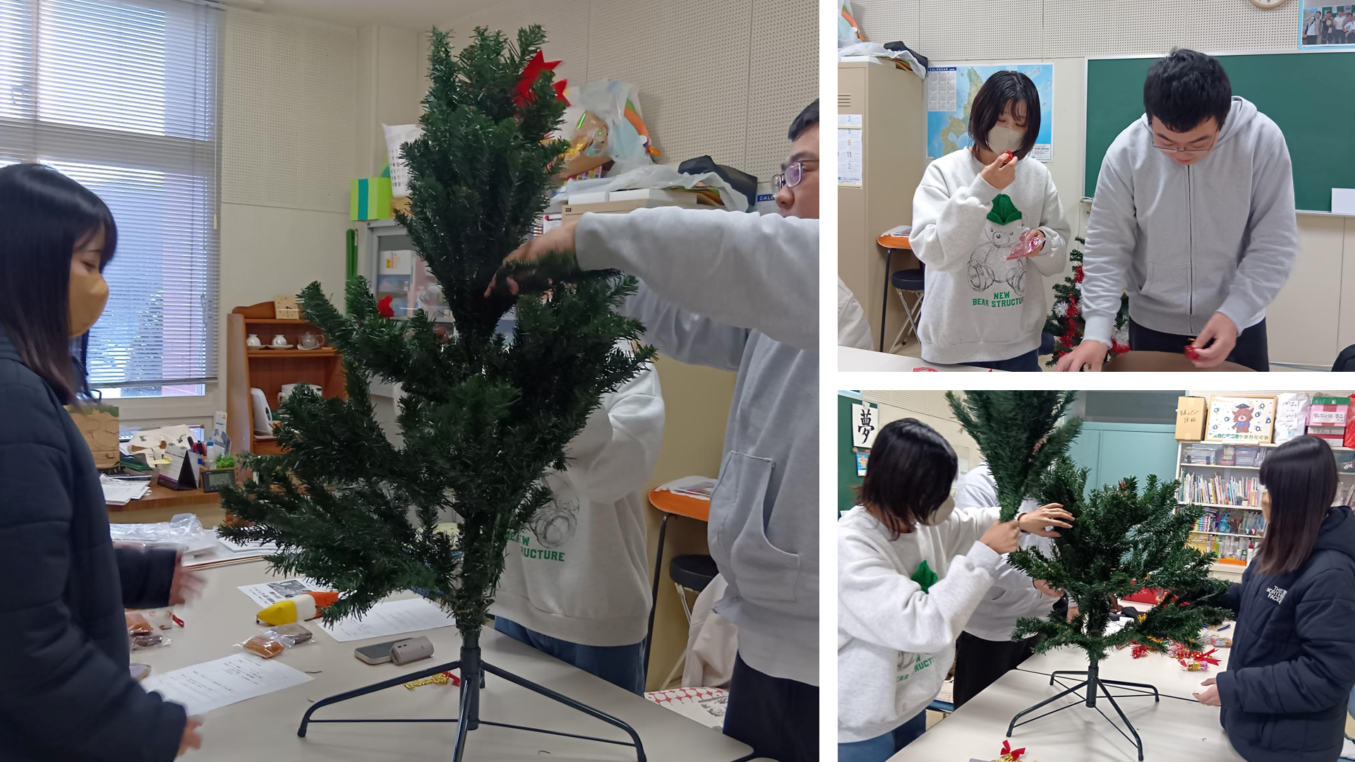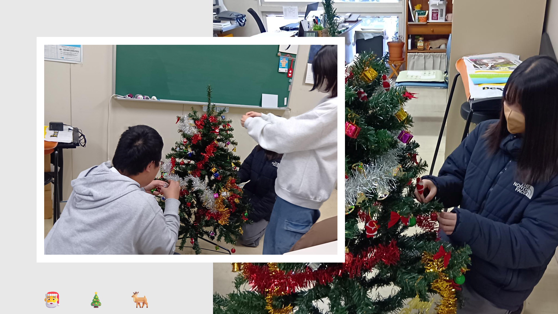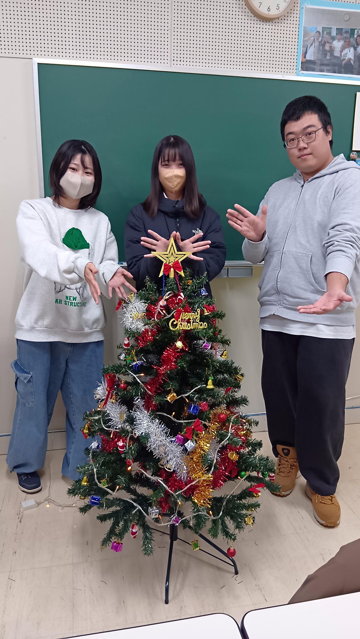 さて昨日は、図書情報館の点灯式を紹介しましたがその翌日、ゼミ生が研究室でツリーの飾りつけを楽しみました(´∀`*)