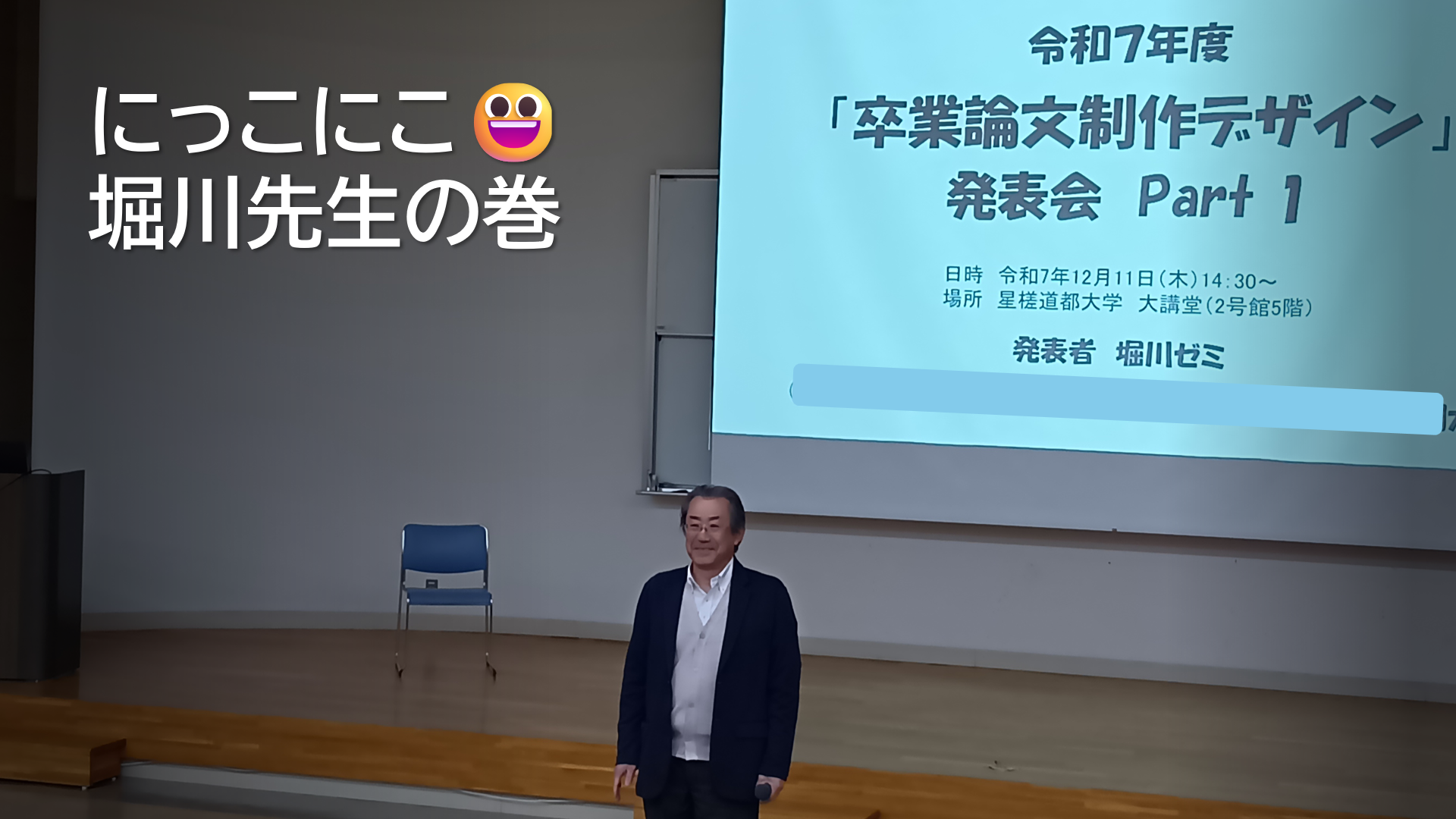 今日は後半の学生の発表予定とのことです('ω')ノ先生方の紹介はこちらをご覧ください⇒ 堀川厚志先生✨ 木村浩紀先生✨