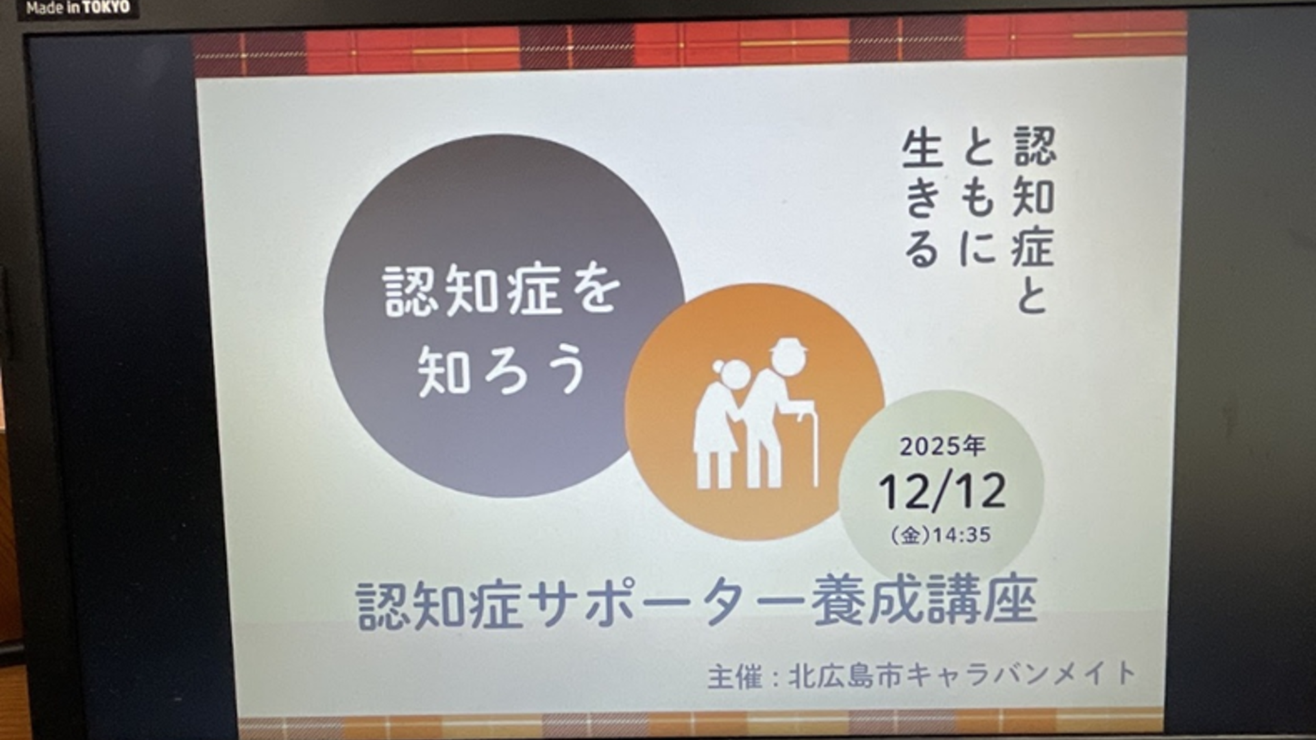 2回目の全体授業は、北広島市キャラバン・メイトの皆さまのご講義による「認知症サポーター養成講座」を受講しました。