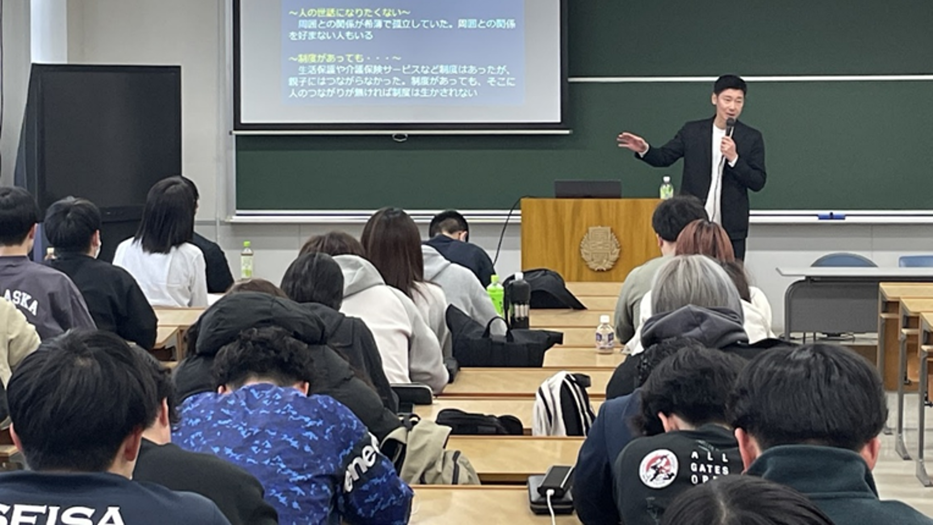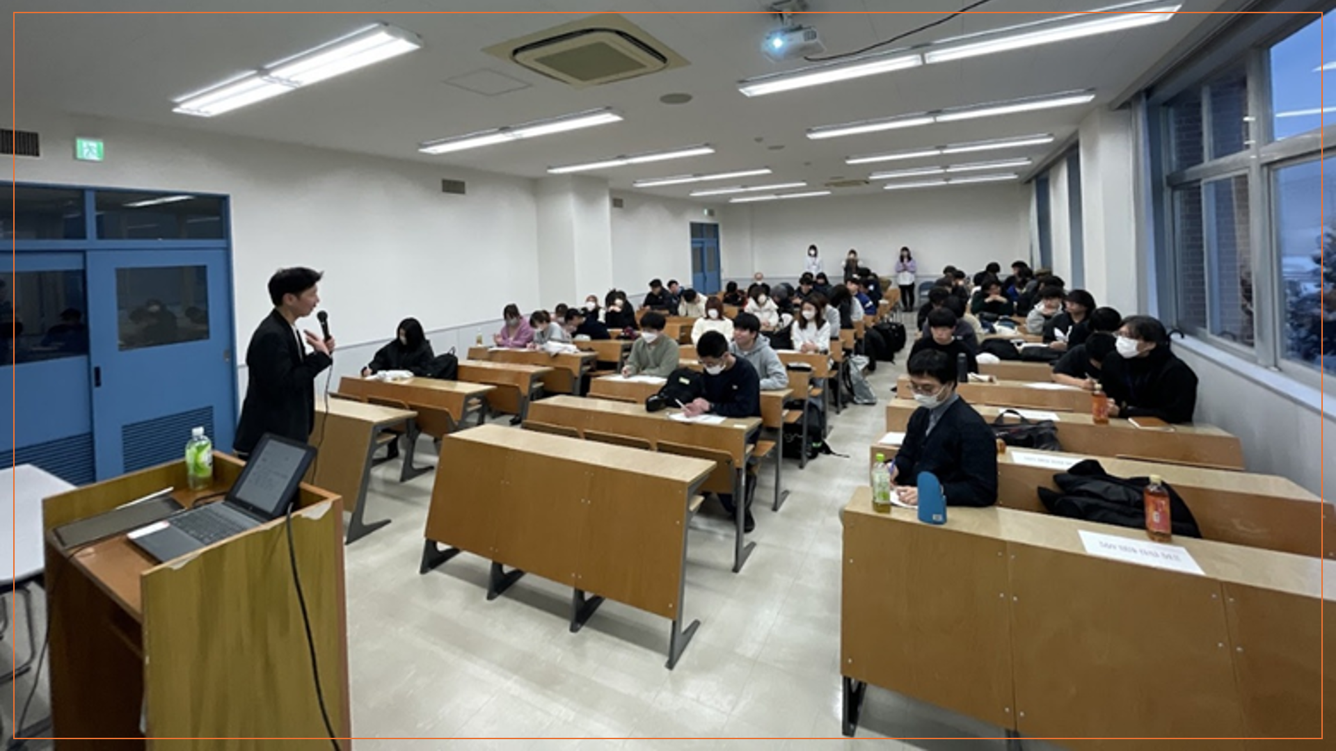 普段はグループごとに演習授業を進めていますが 全員集合!の授業もあります。