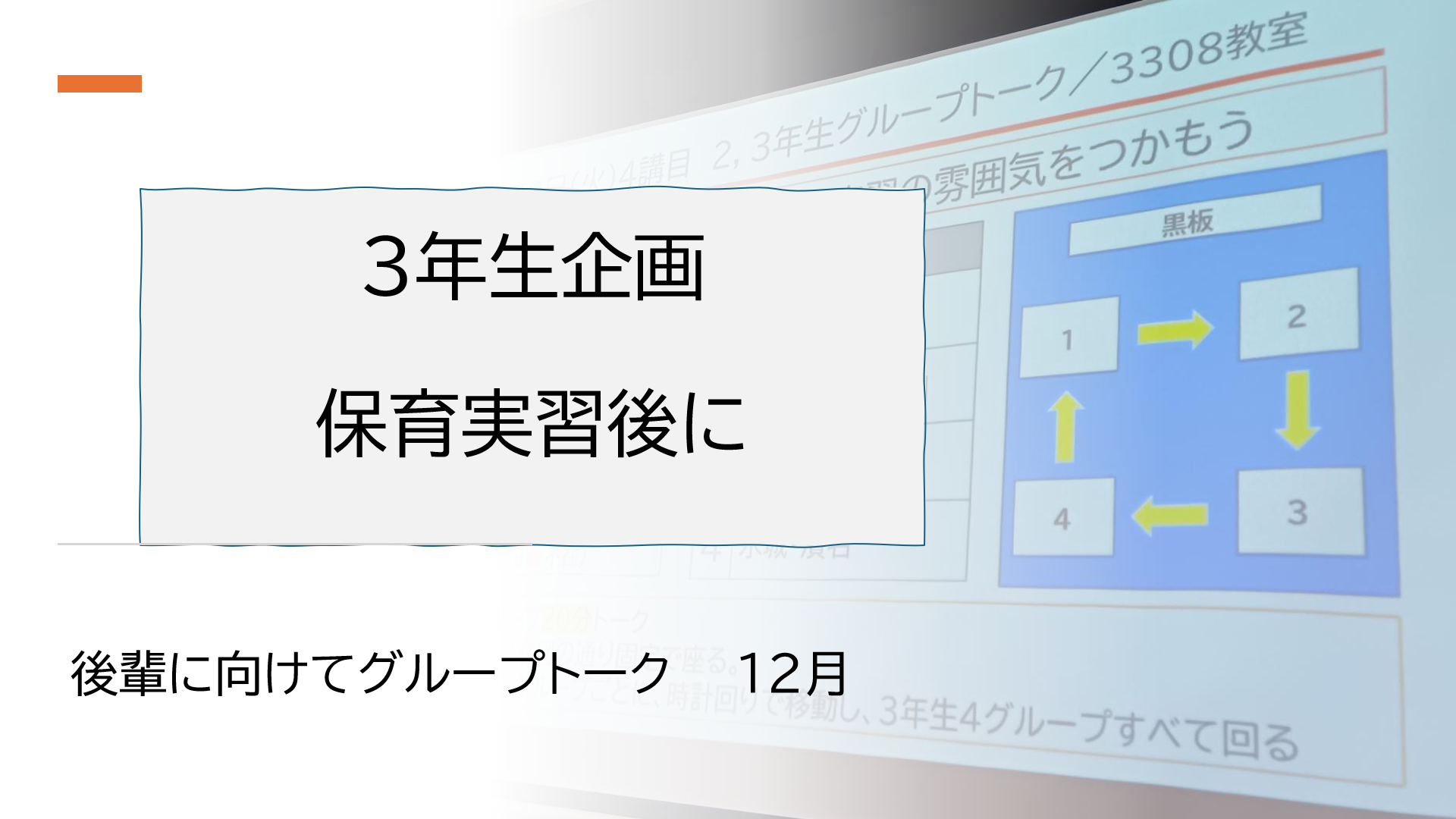 さて12月中旬、初めての保育実習が終わった3年生たちが企画する「保育実習グループトーク」が開催されました。