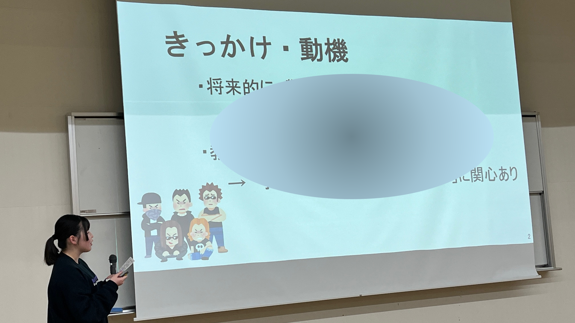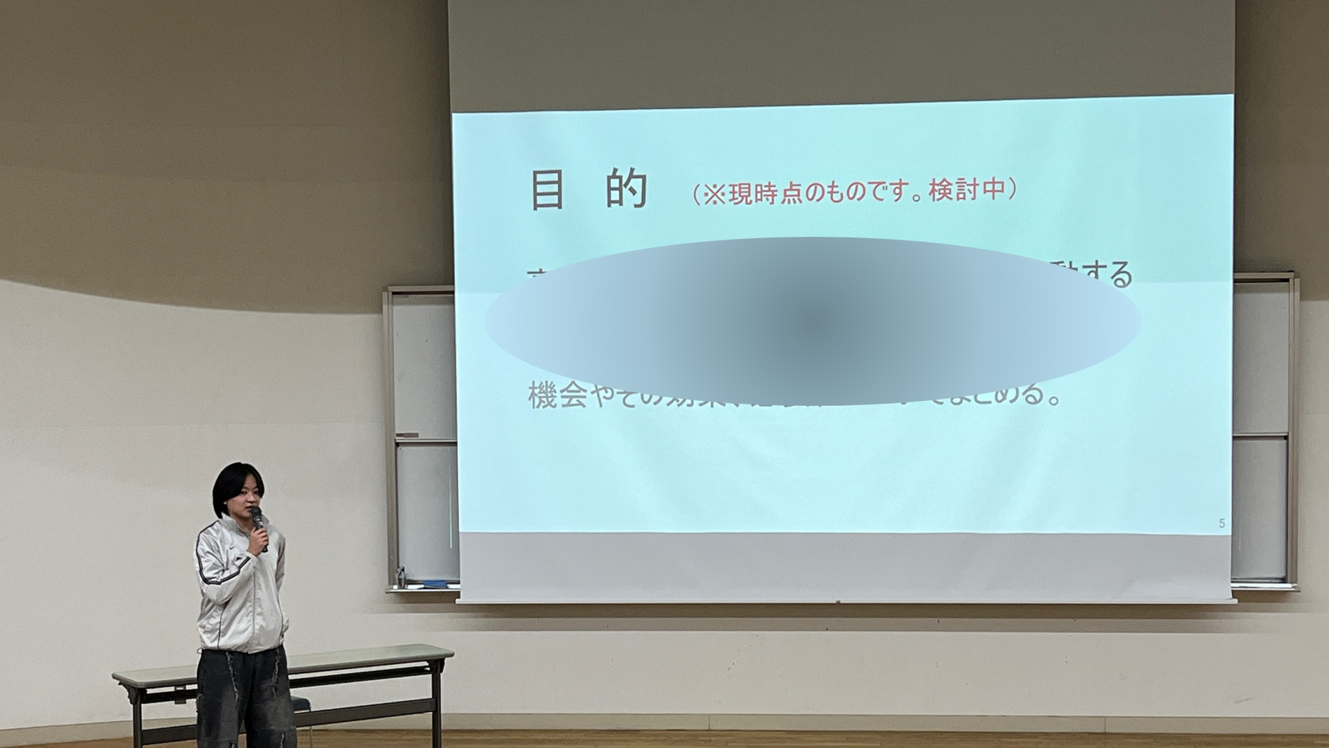 プレゼンテーションデータは、Microsoft PowerPointで5,6画面で作成し、発表しました。