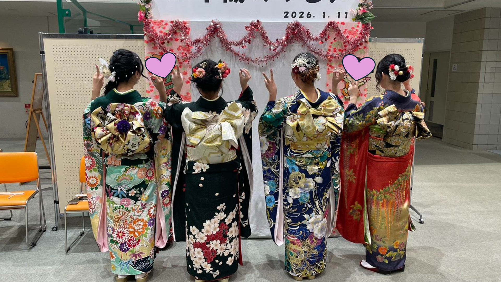 スーツや振袖などで華やかな姿と後姿で決意を示してくれましたヽ(^。^)ノ