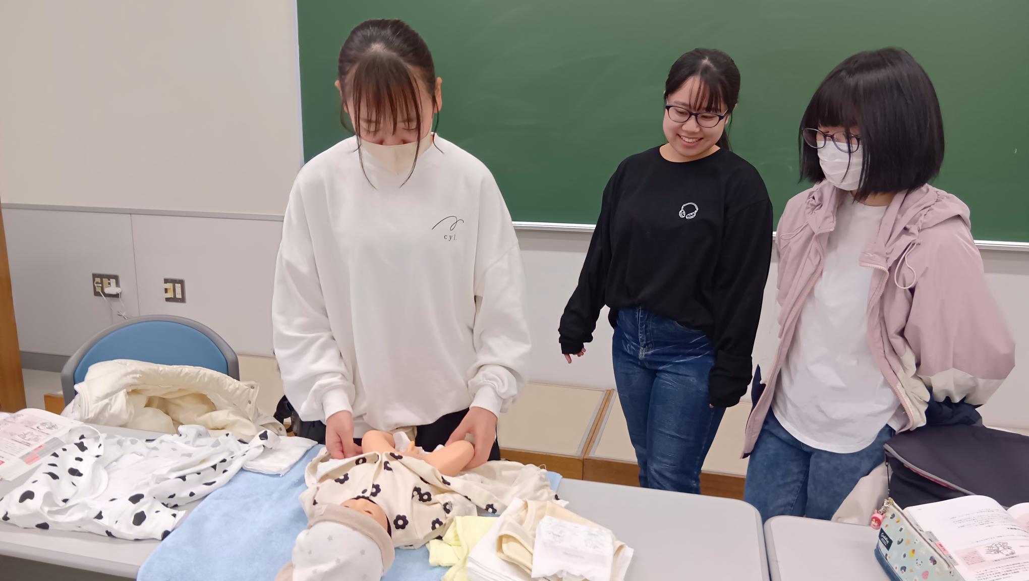 保育専攻 乳児保育の演習授業(衣類の着脱)
