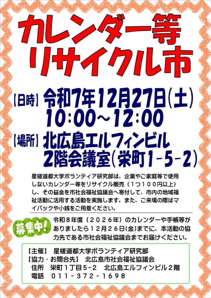 ボランティア研究部の活動-カレンダー等リサイクル市ー