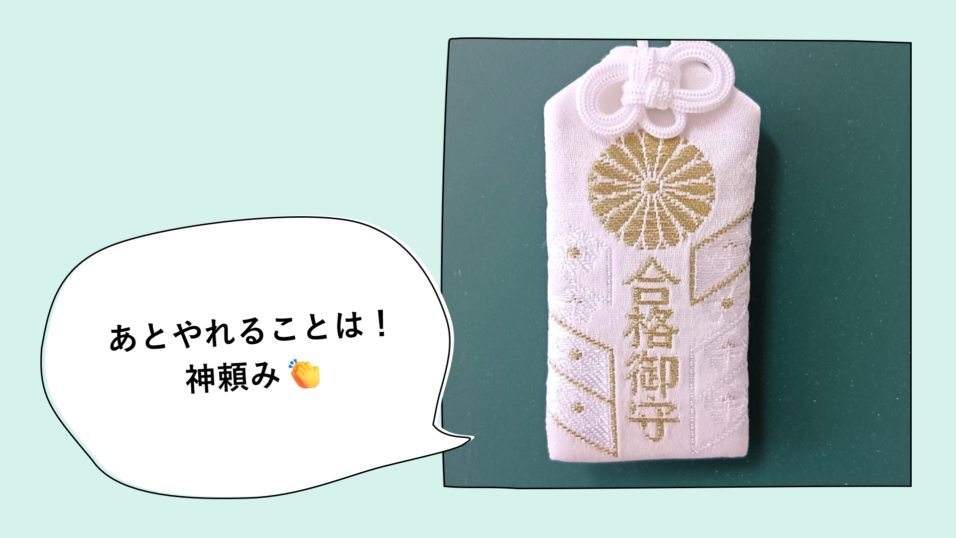 受験する学生のみなさん、受験票・筆記用具・昼ご飯・お守り!