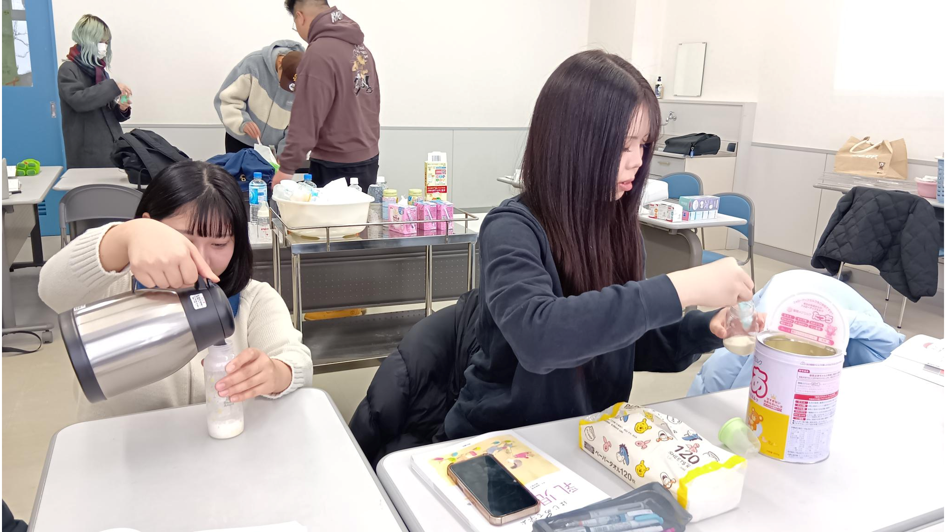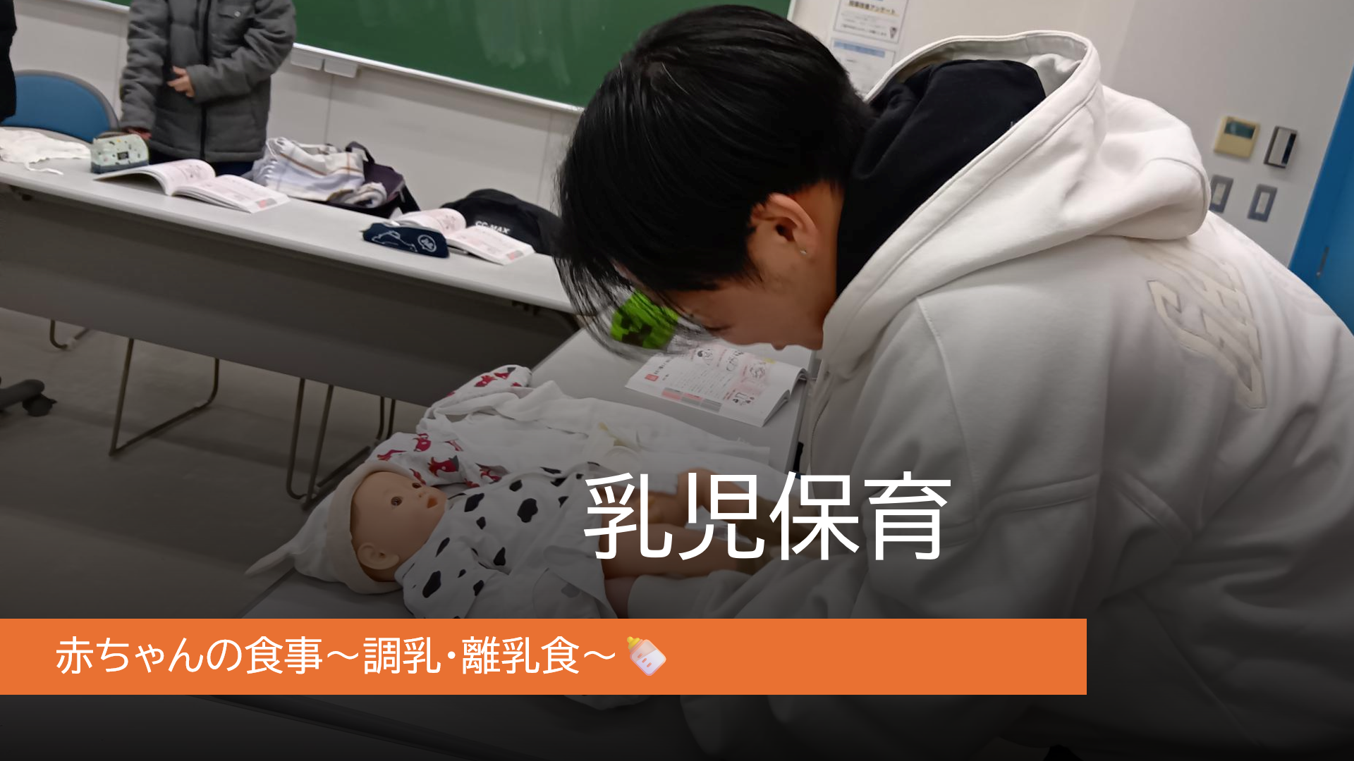 乳児保育Ⅱは演習科目なので、教科書を使いながらも体験を組み合わせた内容ですすめています。
