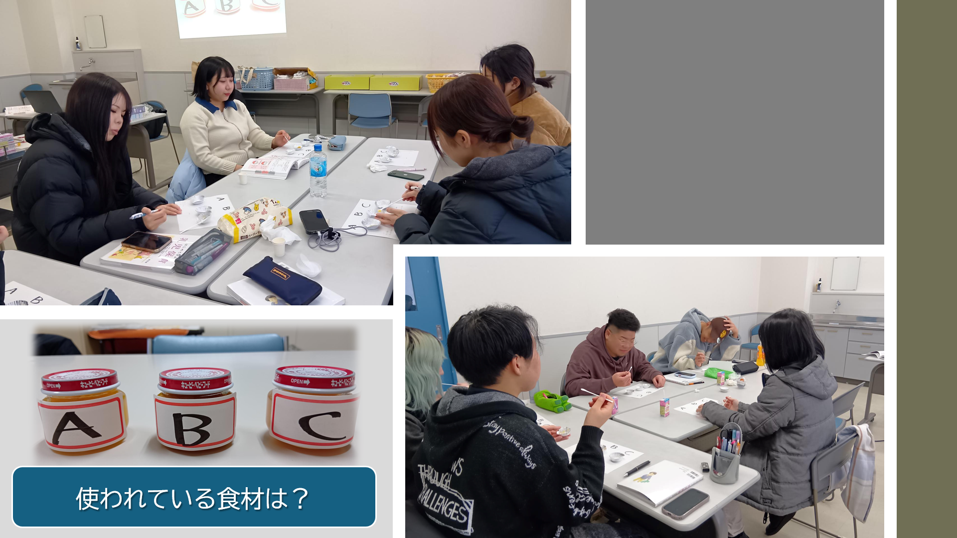 乳児の味覚について学びながら、ベビーフード3種類も味比べ体験をしてみました。
