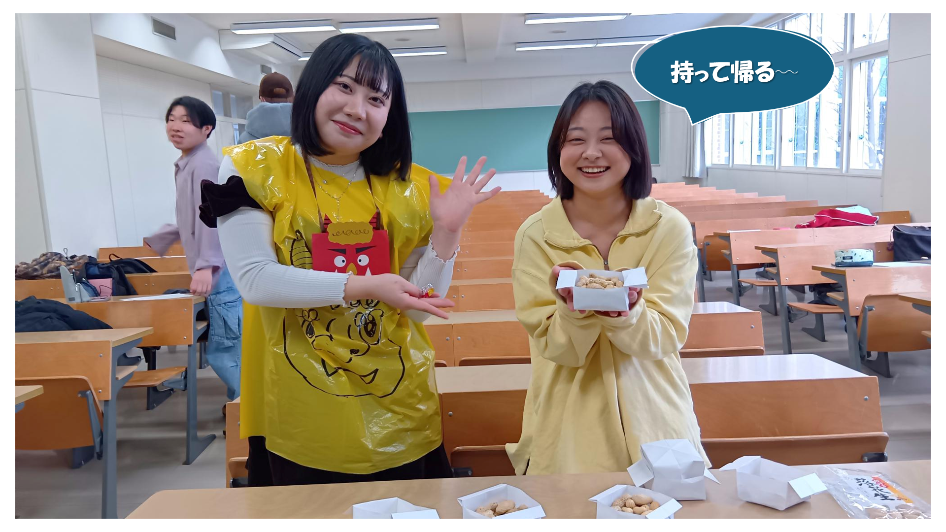 学生たちに聞くと、落花生で豆まきをした経験が多かったです。