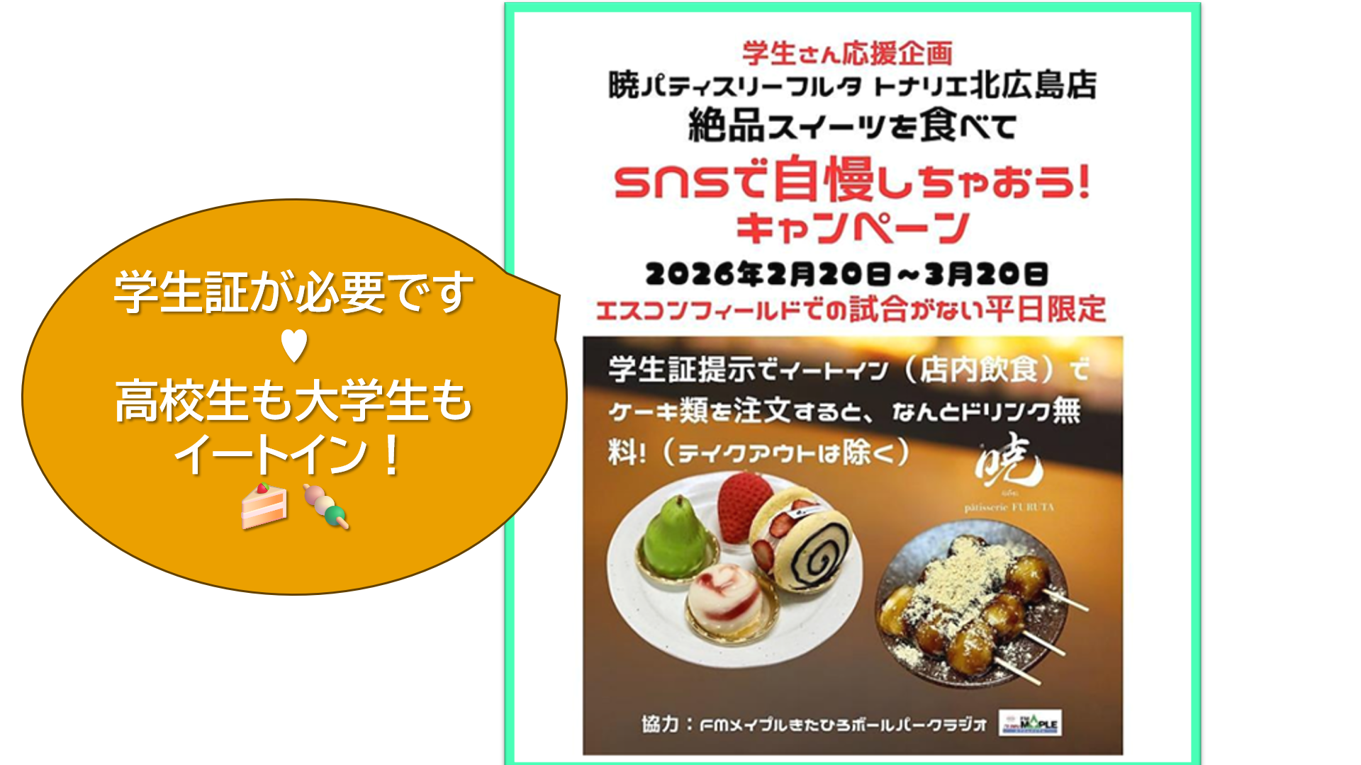 北広島駅前トナリエで学生証を提示すると!ー期間限定企画ー
