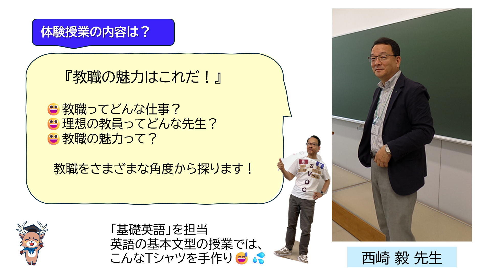 長年教育職で指導経験を積んできた西崎先生、教職の魅力をたーーーーっぷりと話すから(^-^)との情報デス。