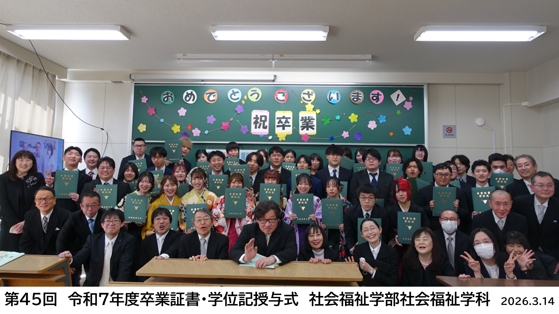 通常は学部長が授与するのですが、今回は学部長の計らいにより、各専攻の先生が証書を手渡す役に(/・ω・)/