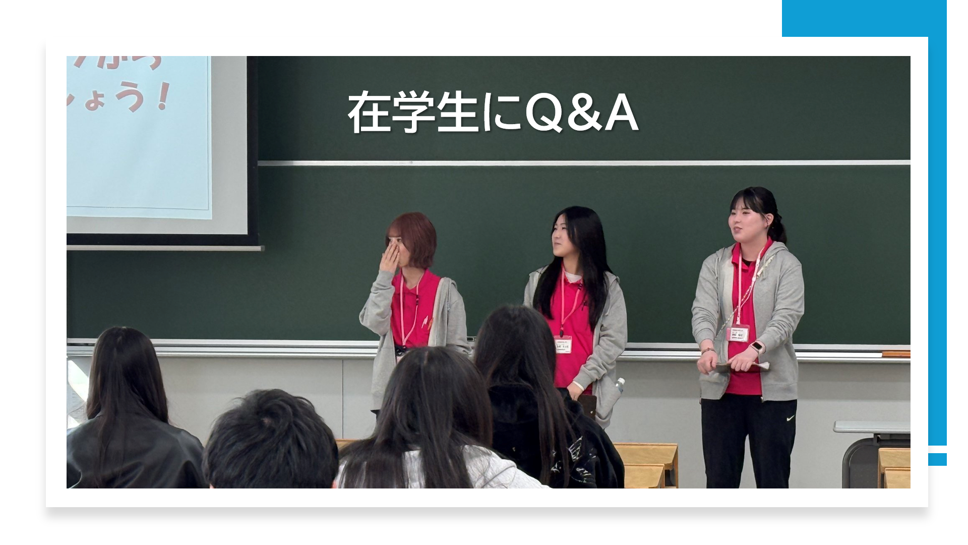 高校生が「聞いてみたいな~」という質問を在学生に答えてもらう、Q&Aタイムなどがありました。
