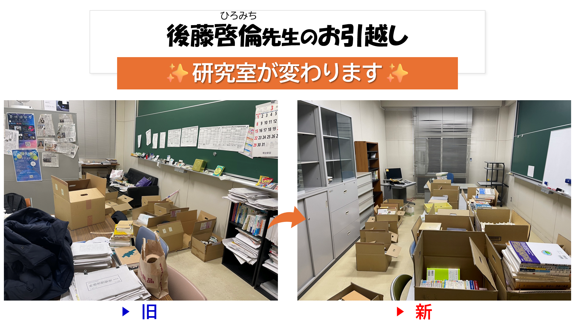 今日は、新年度の始まりに向けて研究室の引っ越しをした後藤先生にクローズアップ(^▽^)