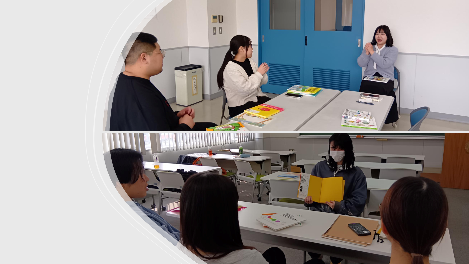 (昨日に続き)今日は保育実習指導で行った絵本読みの様子をご紹介✨✨✨