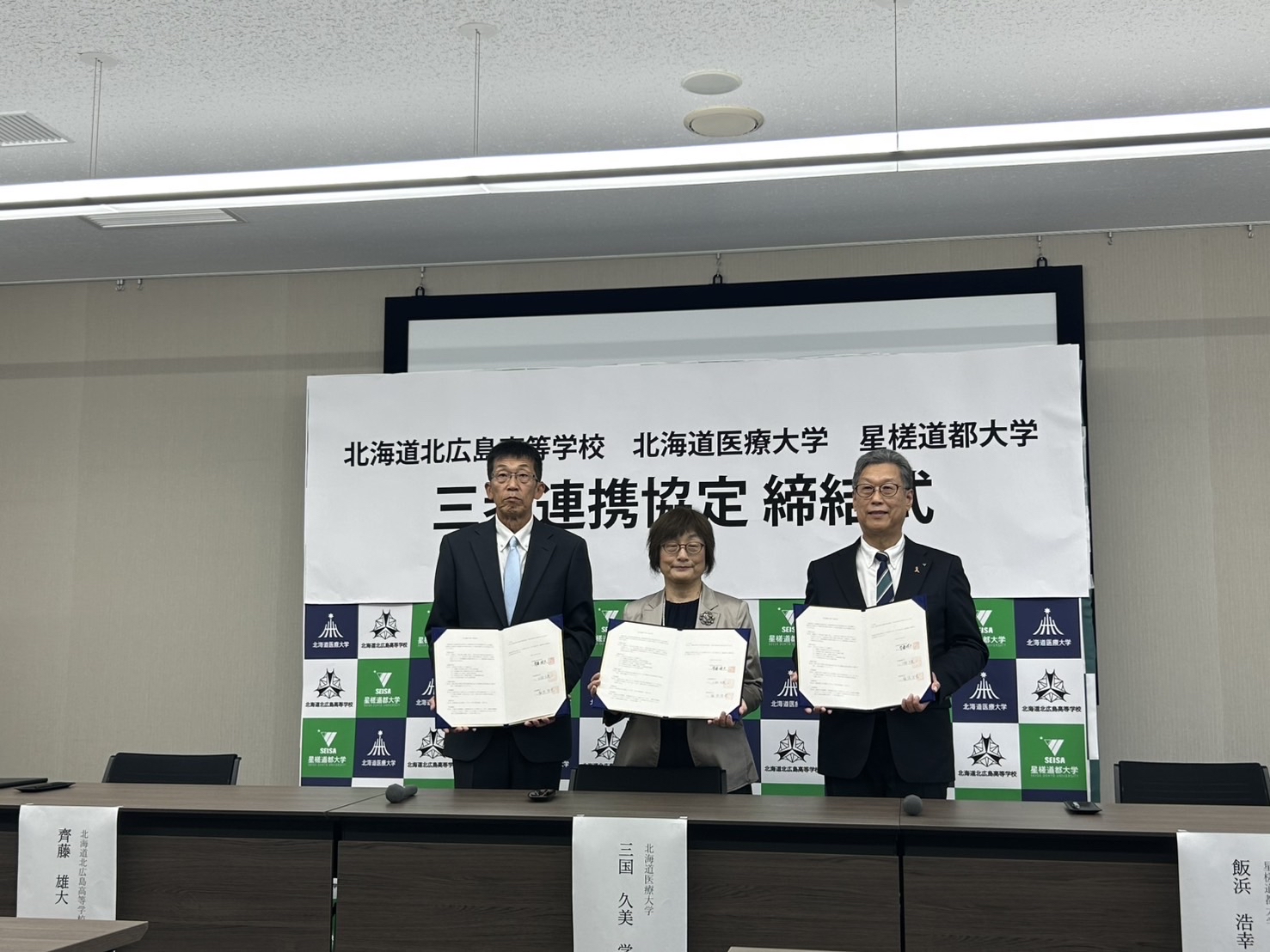2025年9月26日(金)、星槎道都大学は、北海道北広島高等学校、北海道医療大学と「地域人材の育成および地域活性化」を目的とした三者連携協定を締結いたしました。