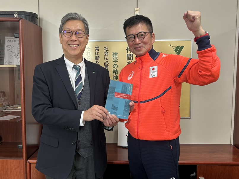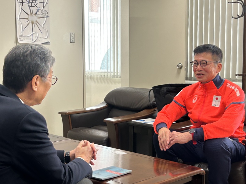 経営学部荒井特任教授が飯浜学長に表敬訪問(ミラノ・コルティナ2026冬季パラリンピック日本代表副団長)