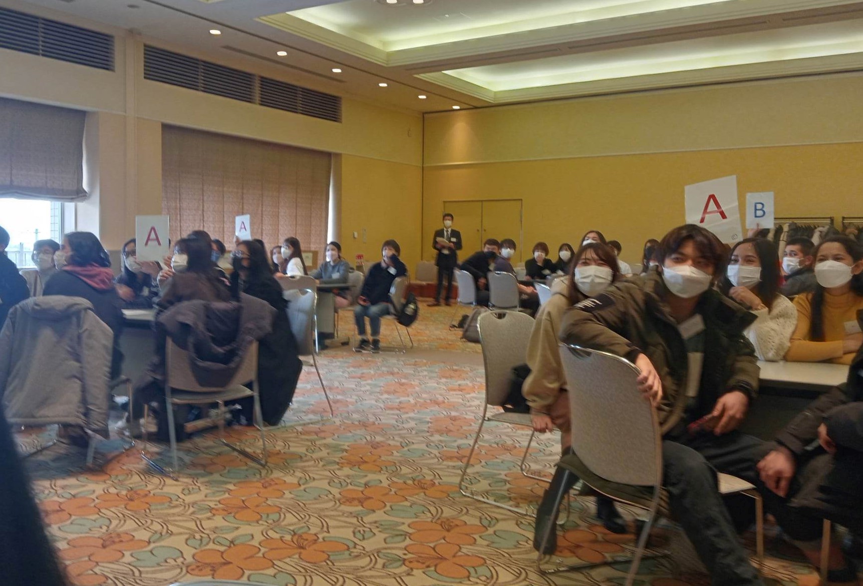 上の写真はイベントで行われた「キタヒロクイズ大会」の様子です。星槎道都大学がある北広島市にちなんだクイズですが、特産品やご当地マスコットなどを知らない留学生もいたようです。(日本人の中にも考え込んでいる方がいました)