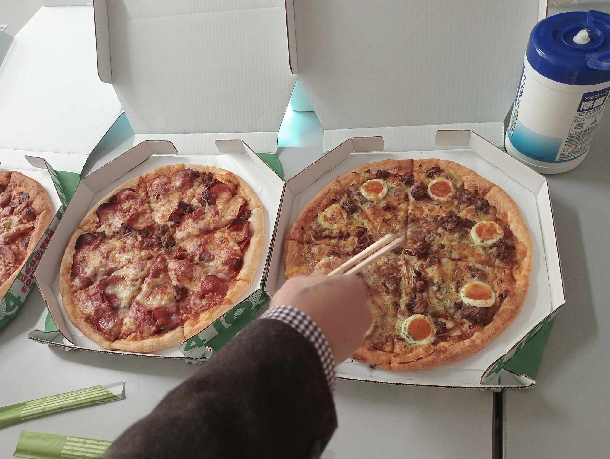西崎先生の研究室にお邪魔すると、お部屋はクリスマス一色!おいしそうな食事もご用意されていました!留学生たちも大喜びです。ピザをお箸で取る…日本のクリスマスパーティーを体験した留学生たち、みんなで乾杯した後は、自己紹介を兼ねて出身地や母校の紹介を行いました。