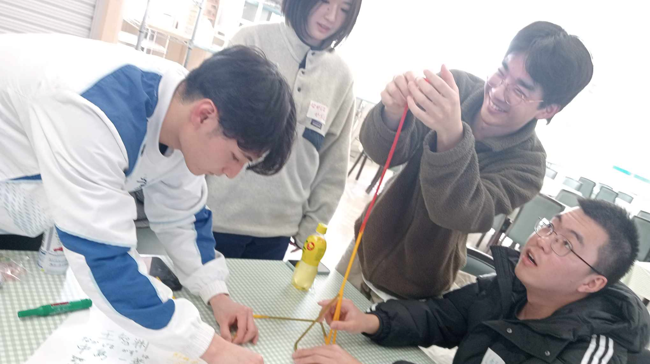 12本のストローとはさみを使って、一番高いストロータワーを作ったチームの勝ちです。