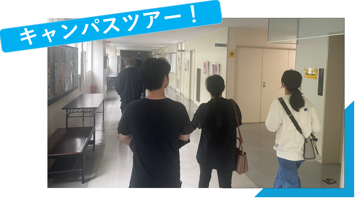 今日は9月に編入する留学生2名が大学見学に来ました。