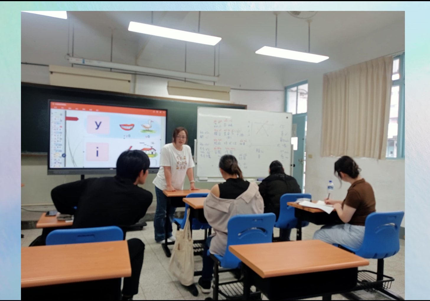中国語の授業は発音の復習から始まりました。