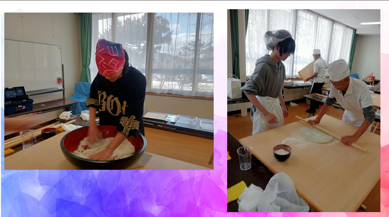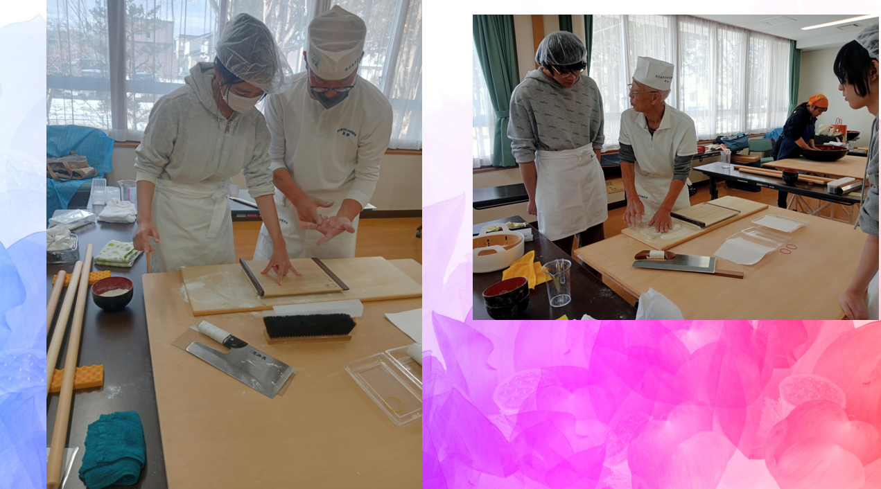 今回は「北広島手打ちそば愛好会」のみなさんを取材し、留学生が実際に手打ちそば作りを体験しました。