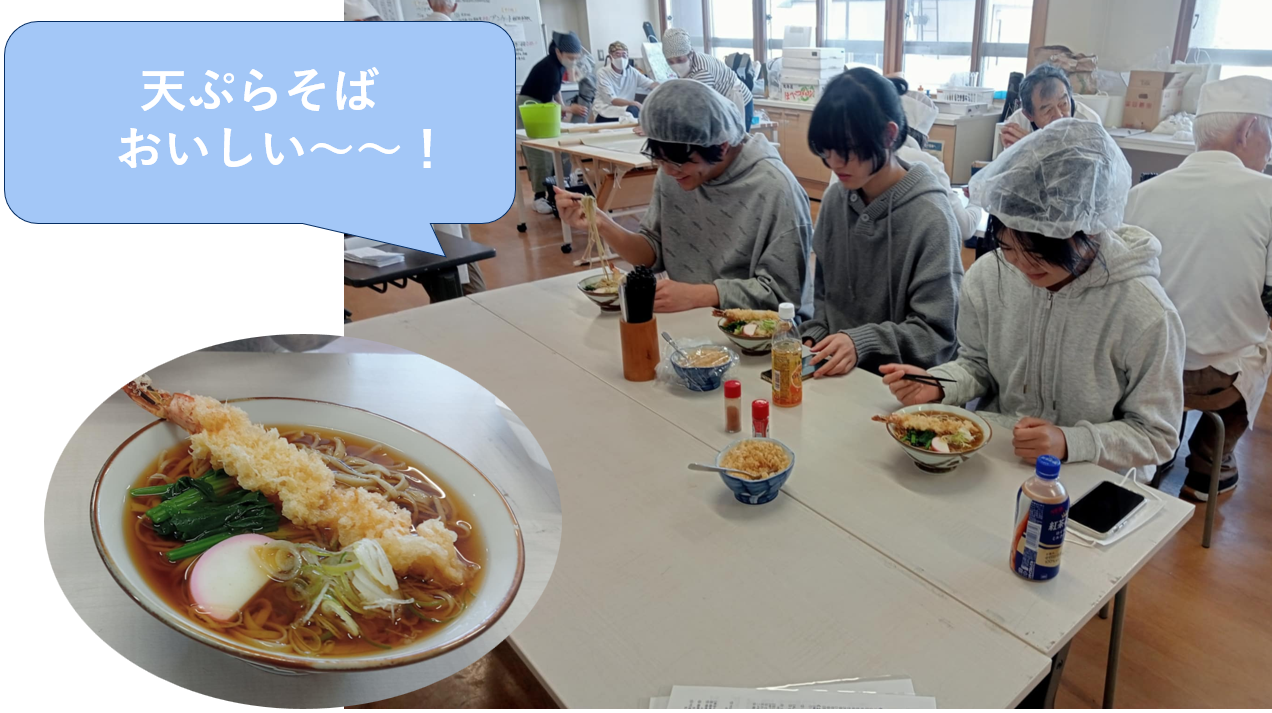 参加留学生サ君:「自分で作ったそばはとてもおいしいです!私は4回おかわりしました。」