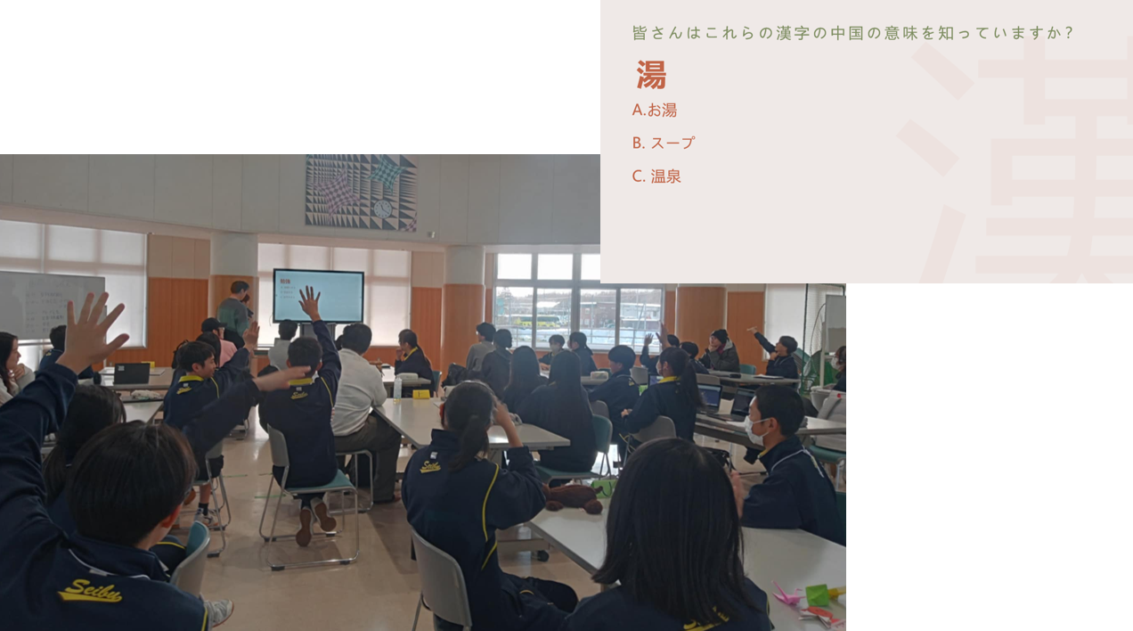 今回参加の留学生は全員中国出身だったので、中国語に関するクイズをしました。