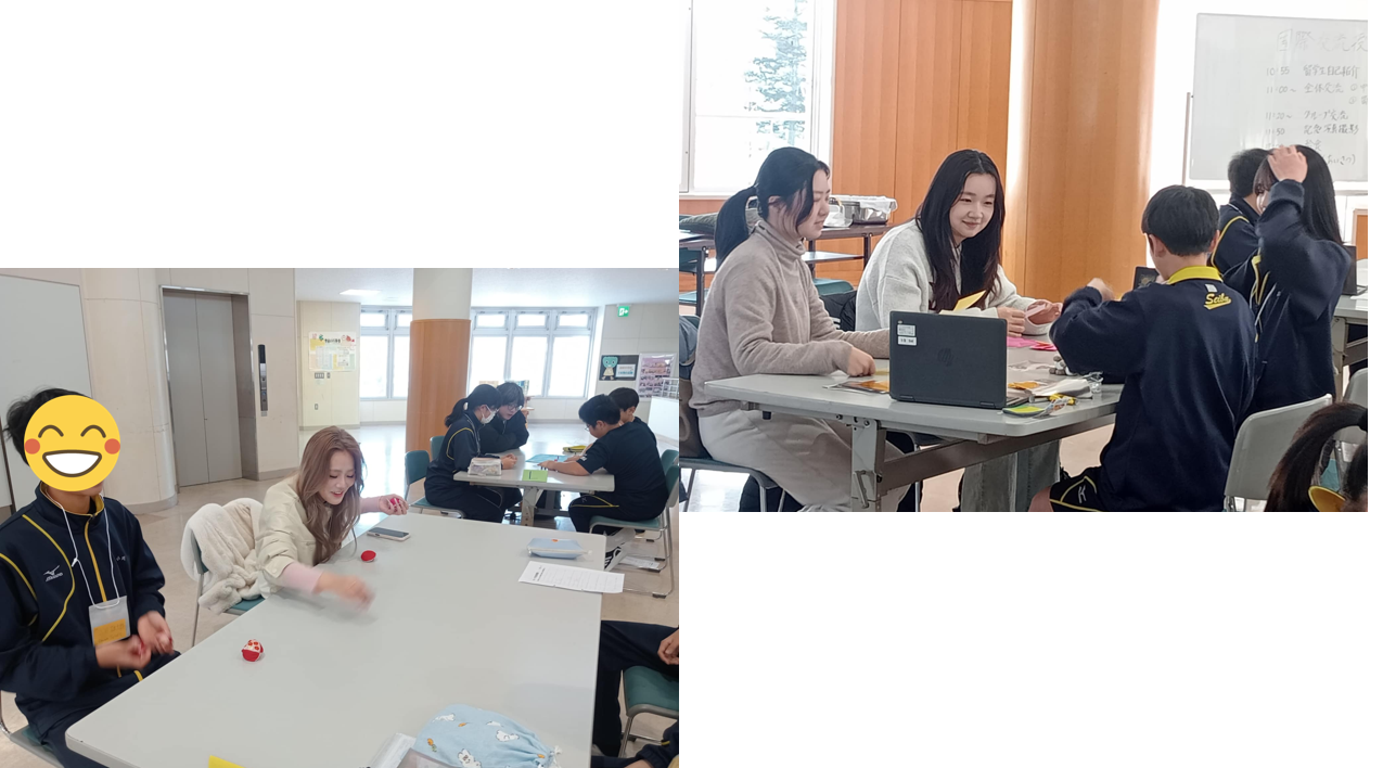 すごろくを楽しむグループ、絵しりとりで盛り上がるグループ、おりがみやコマ回しを中学生さんが教えてくれるテーブルもありました。