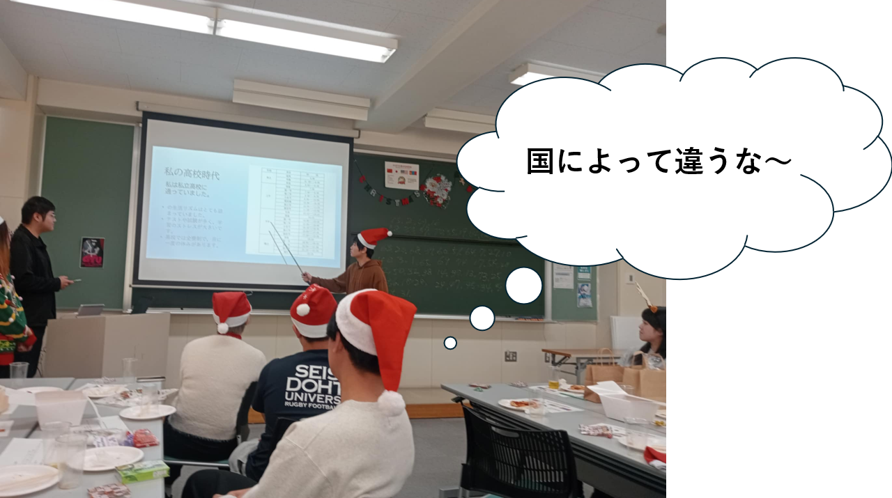 今週は、留学生ゼミと西崎ゼミが合同クリスマス会をしました。