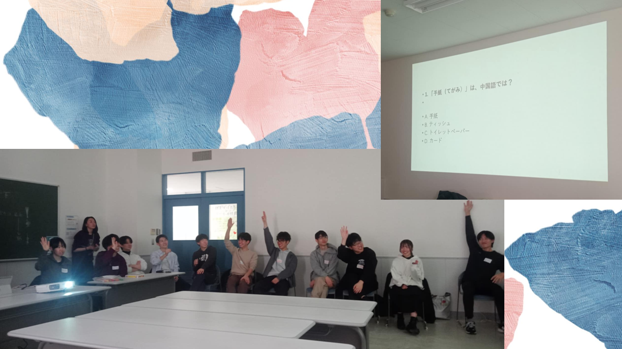 今回はソン先生の「日本人学生に異文化体験をさせてあげたい。色々な文化を持つ人と交流してもらいたい」という声にお応えし、1年次の留学生ゼミと「中国語入門」の合同授業をおこないました!