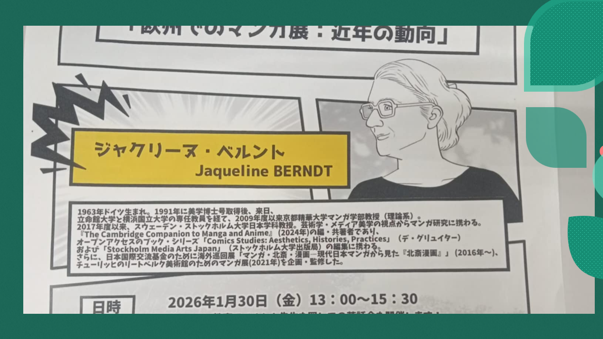 今回は星槎道都大学の学生に「欧州でのマンガ展:近年の動向」についてお話ししてくれました!