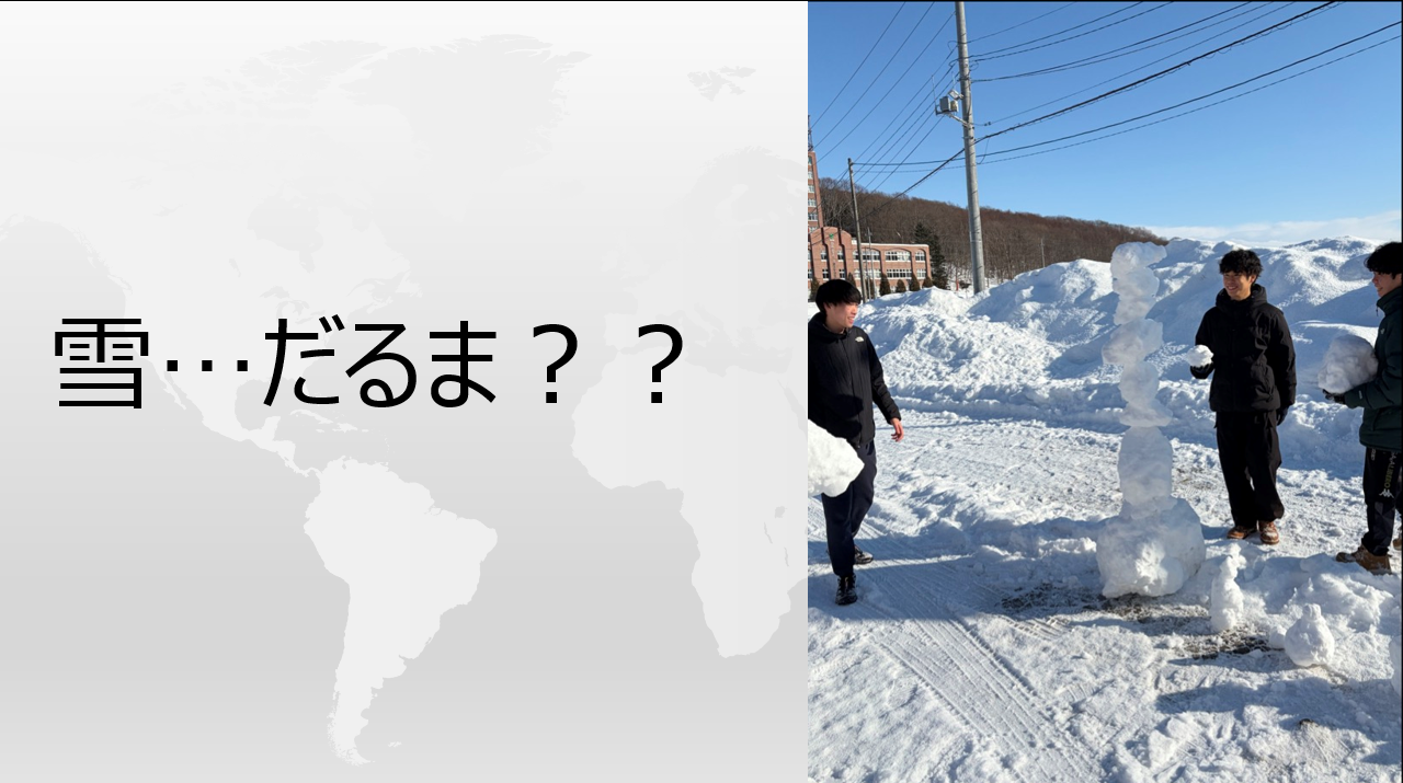 学生のリクエストもあり、雪に触れながらの補講となりました~。