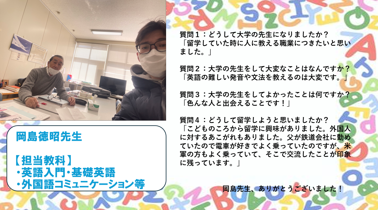 留学生が、好きな先生、興味のある授業の担当教授をインタビューしました!