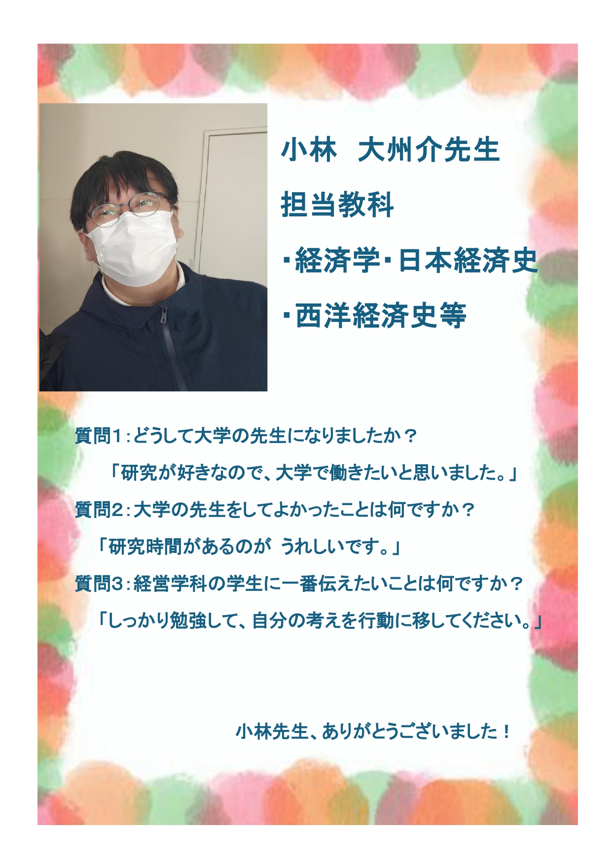 ご協力いただいたのは経営学科の小林州大介先生です。